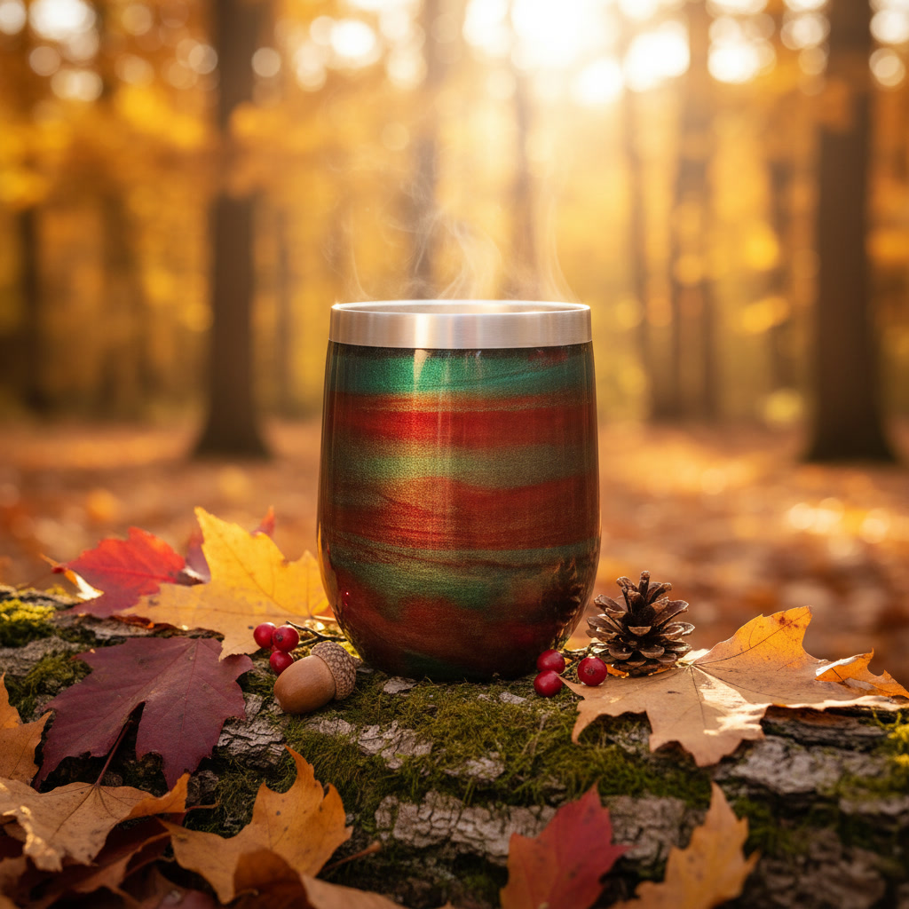 Late-season warmth—copper, ember-red, and fading greens flowing like leaves turning in shifting light. Autumn Shift is crafted for hot or cold drinks, perfect for daily use or those cozy, set-aside moments with coffee, tea, wine, or whatever you reach for when you slow down. Smooth, warm, and richly layered, it carries the feeling of fall in motion.